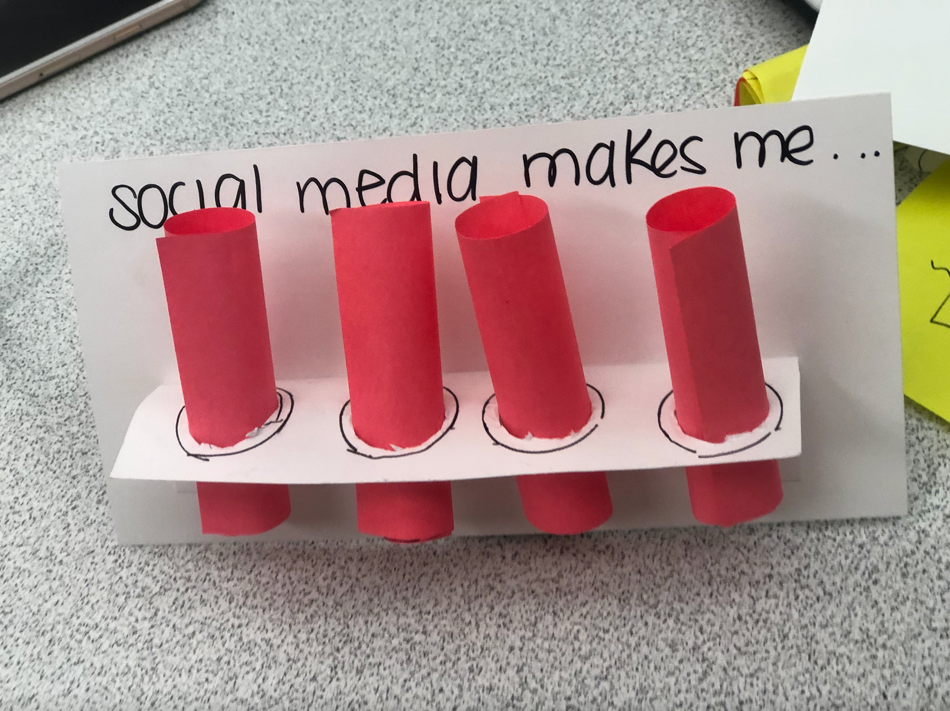 Before deciding on our research question, we wanted to identify goals or outcomes that we wanted to achieve with our exhibit. We wanted to tackle mental health and social media use, while also spreading awareness of how these seemingly innocent platforms have a huge effect on our overall wellbeing. We began the ideation phase with ideas scribbled onto sticky notes. When initially designing exhibit ideas, we discovered that an essential component of the project was for users to be able to see responses in order to engage with the exhibit.