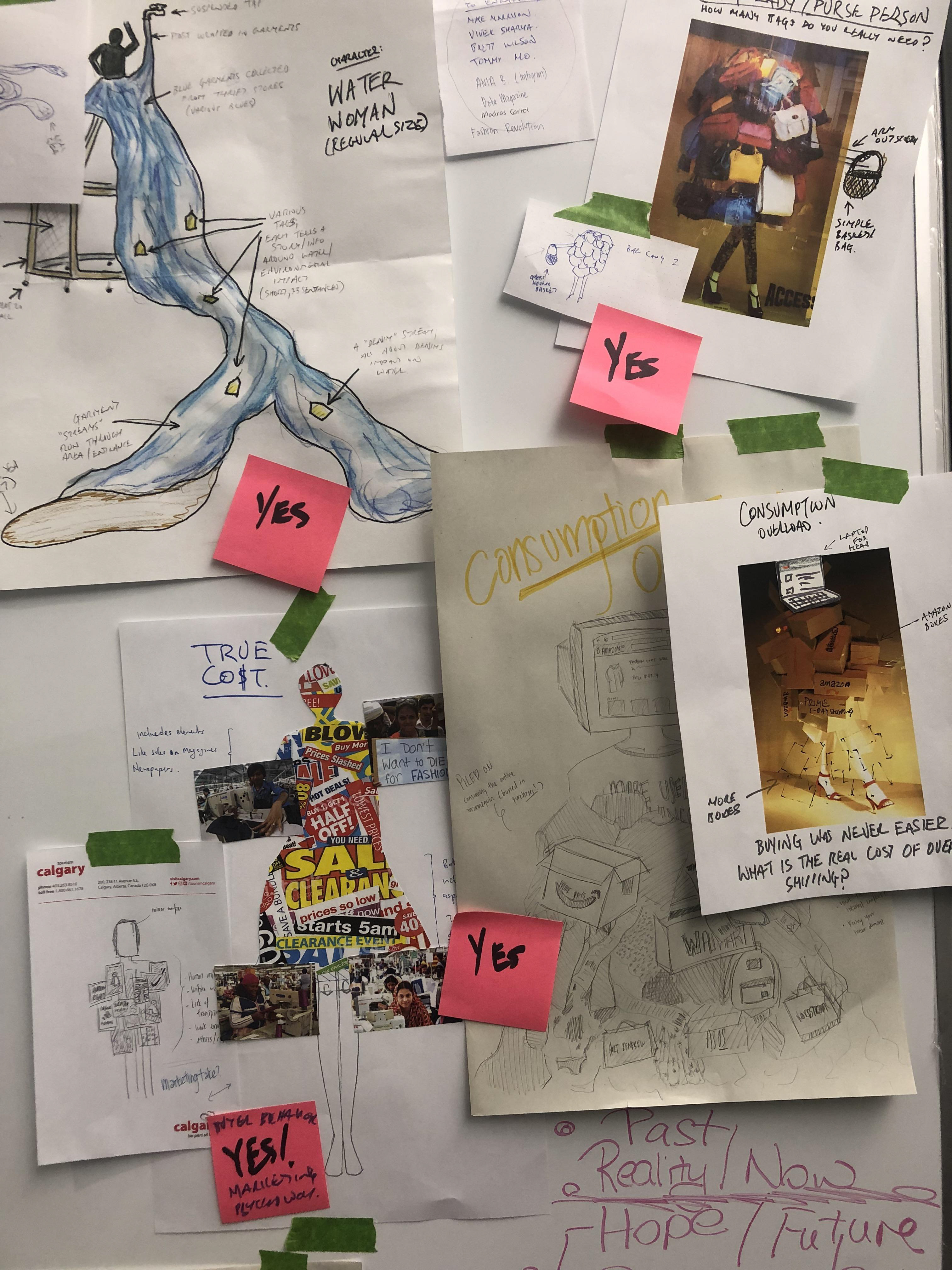 Before delving into the creative process, our project journey began with a comprehensive exploration of the global fashion industry . We engaged directly with TELUS Spark visitors, conducting user engagement surveys to understand their existing practices and considerations when it comes to sustainable fashion. This multifaceted research approach allowed us to tap into real-world behaviours and preferences regarding sustainable fashion.